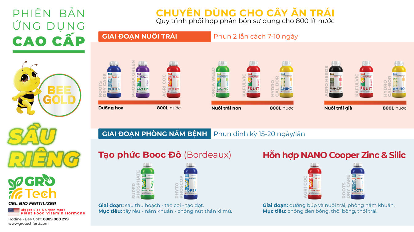 Giai đoạn áp dụng: Sinh trưởng; làm bông; nuôi trái; phòng nấm bệnh